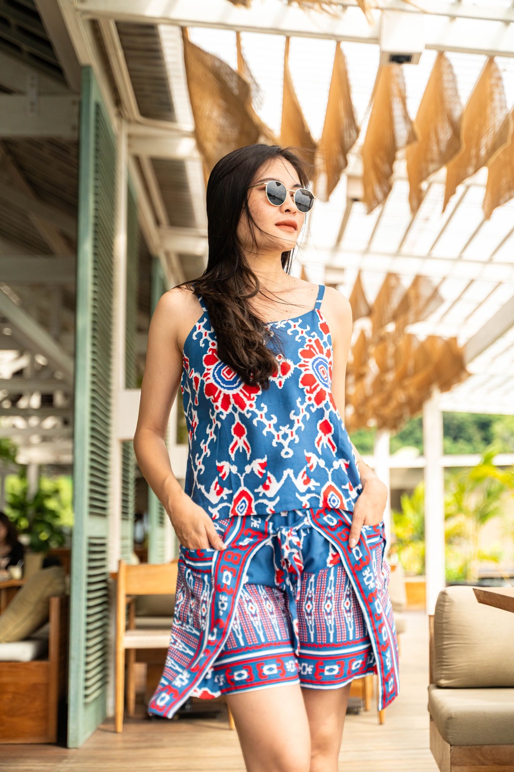 Inner Camisole Rayon Sumba Ikat Navy(All Size)