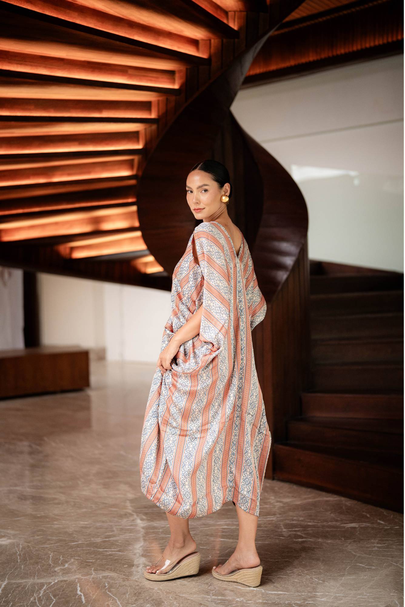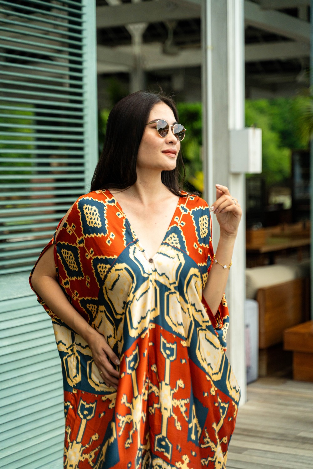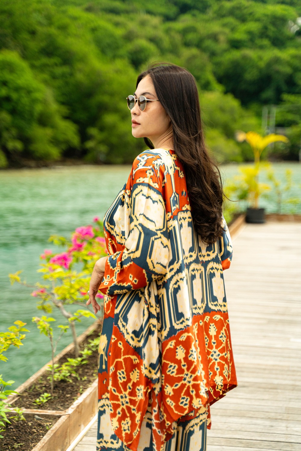 Kaftan Kancing Satin Viscose Gajah Orange(All Size)