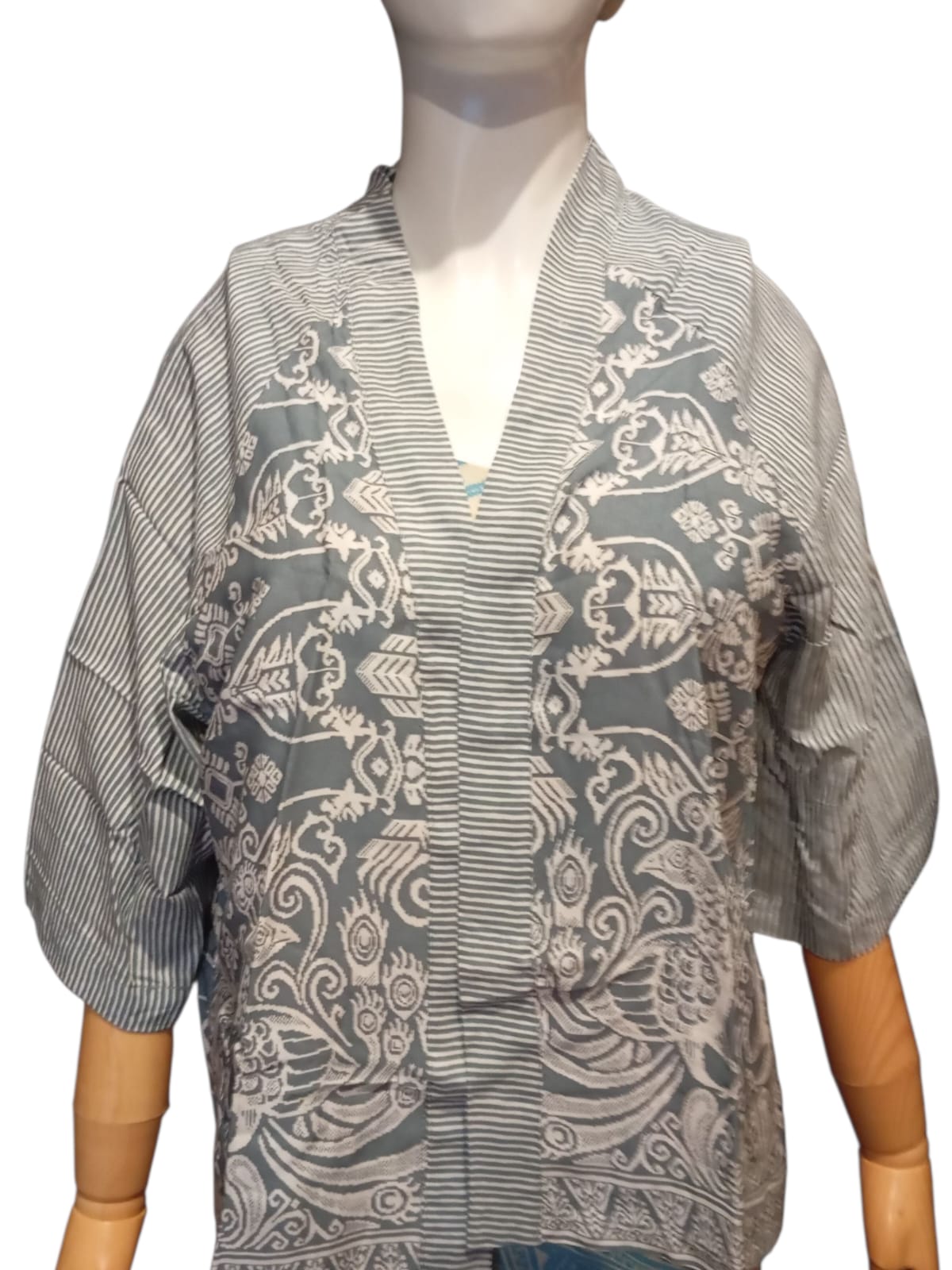 Blazer Panjang Garis Rayon Geringsing Manik Grey(All Size)