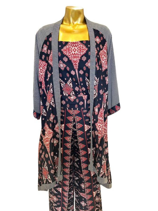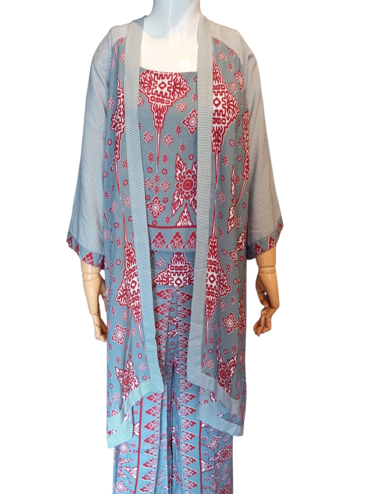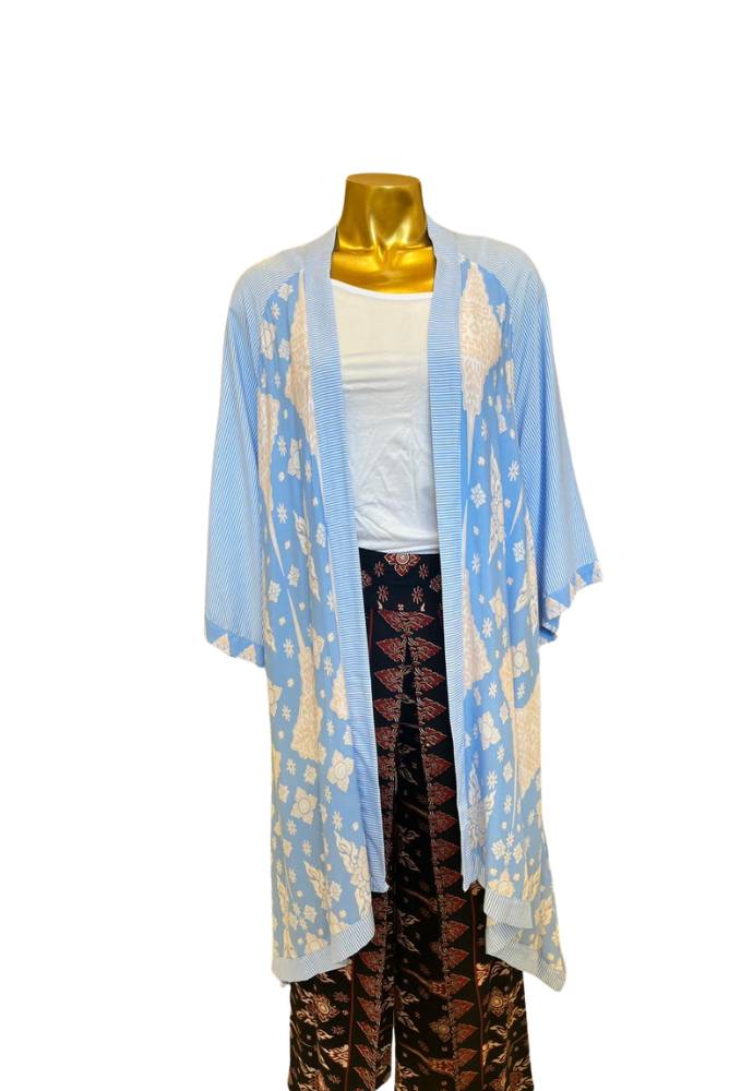 Blazer Panjang Garis Rayon Geringsing Manik Blue Pink(All Size)