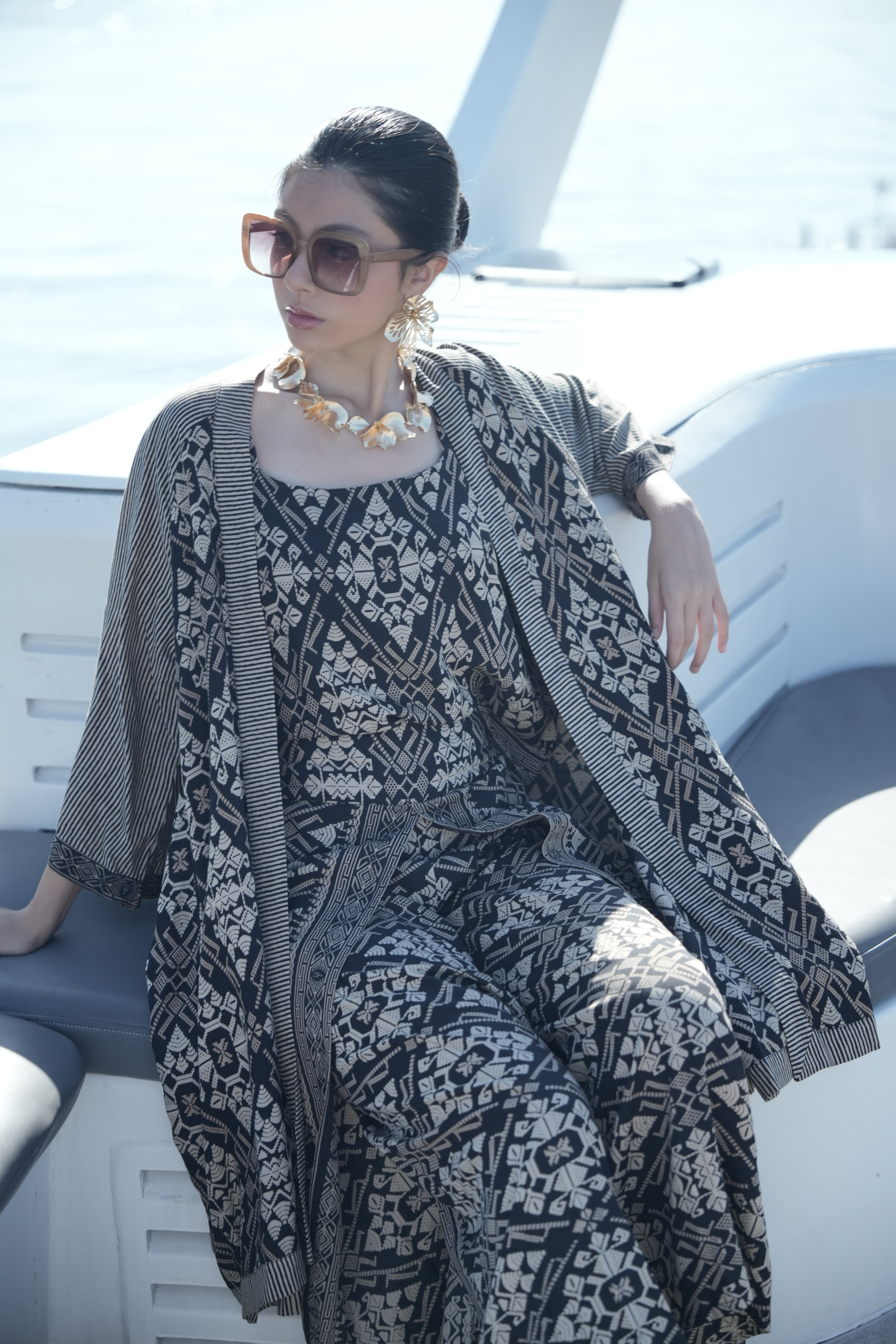 Blazer Panjang Garis Rayon Segiempat Black(All Size)