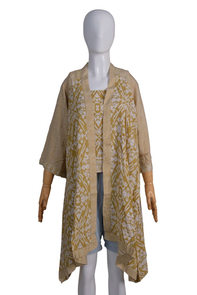 Blazer Panjang Garis Rayon Segiempat Gold(All Size)