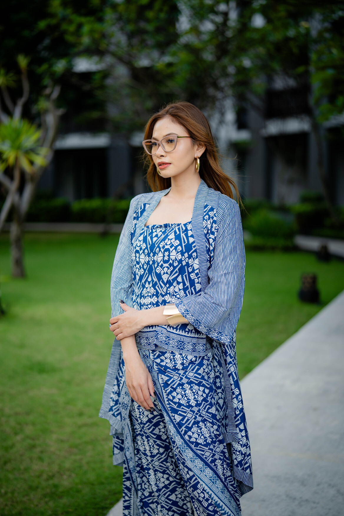Blazer Pendek Garis Rayon Catur Arah Light Blue(All Size)