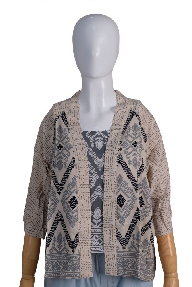 Blazer Panjang Garis Rayon Geringsing Grey(All Size)