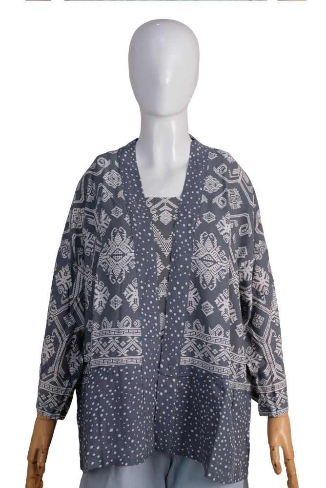 Blazer Panjang Polkadot Rayon Patra Grey(All Size)