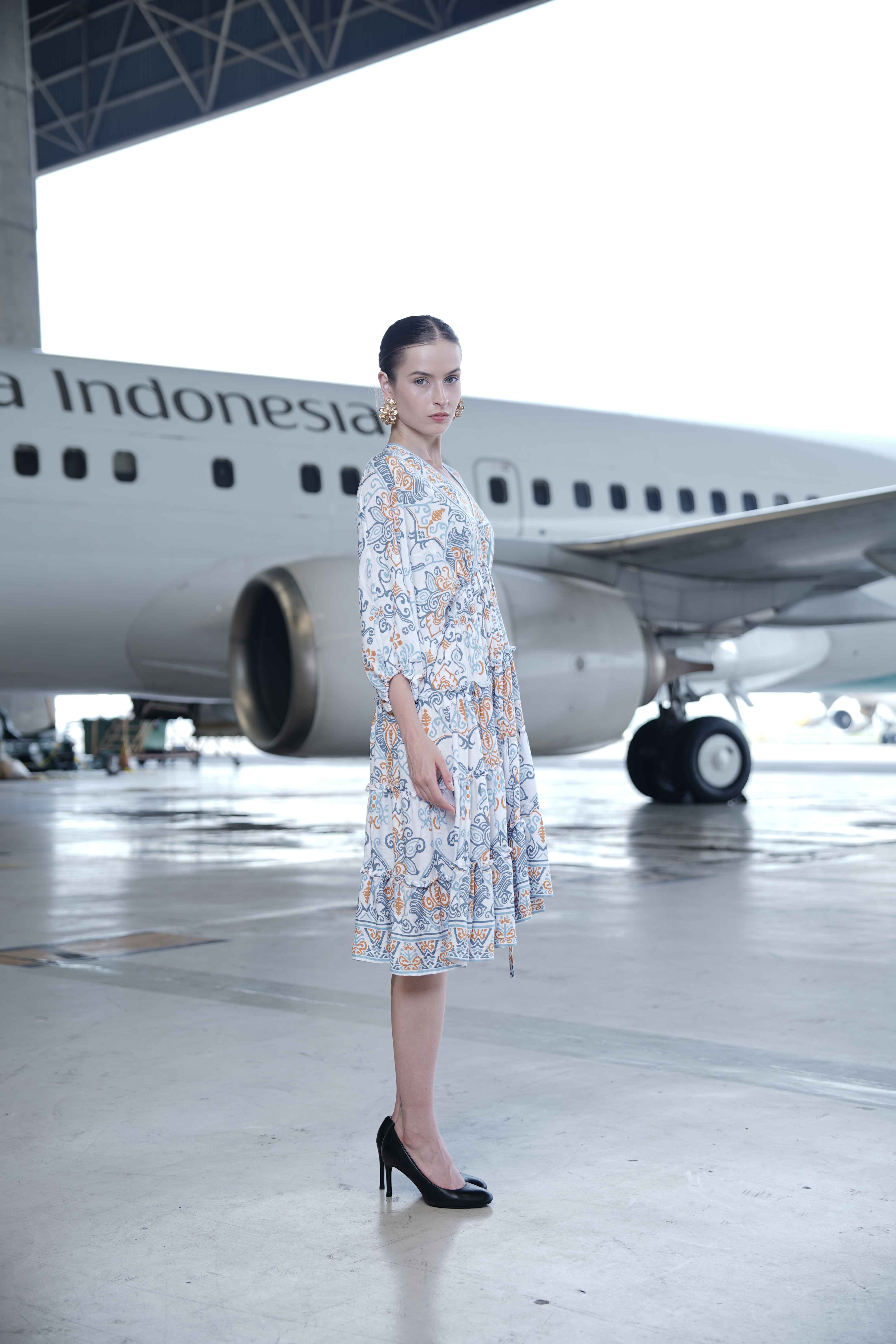Dress Midi Rample Rayon Garuda Crem(All Size)