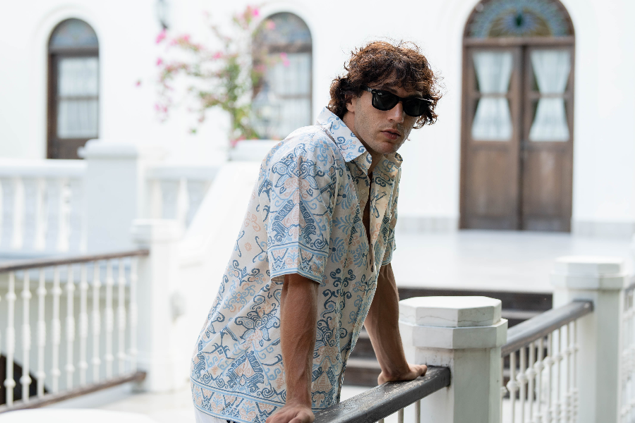 Shirt Men Rayon Garuda Blue Gold(XL)
