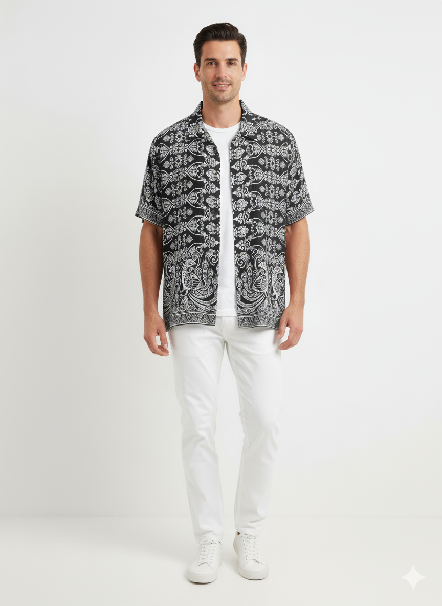 Shirt Men Rayon Merak Black(XXL)