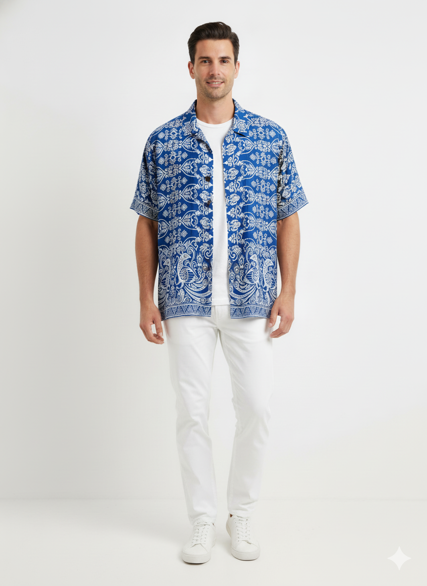 Shirt Men Rayon Merak Dewa Light Blue(XXL)