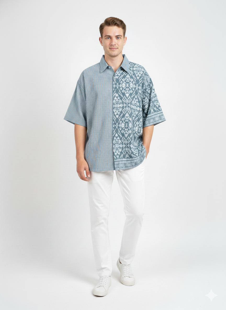 Shirt Men Rayon Catur Arah Grey(L)