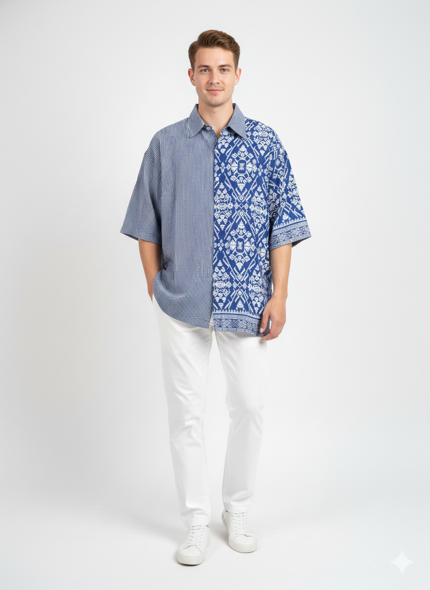 Shirt Men Rayon Catur Arah Navy(L)