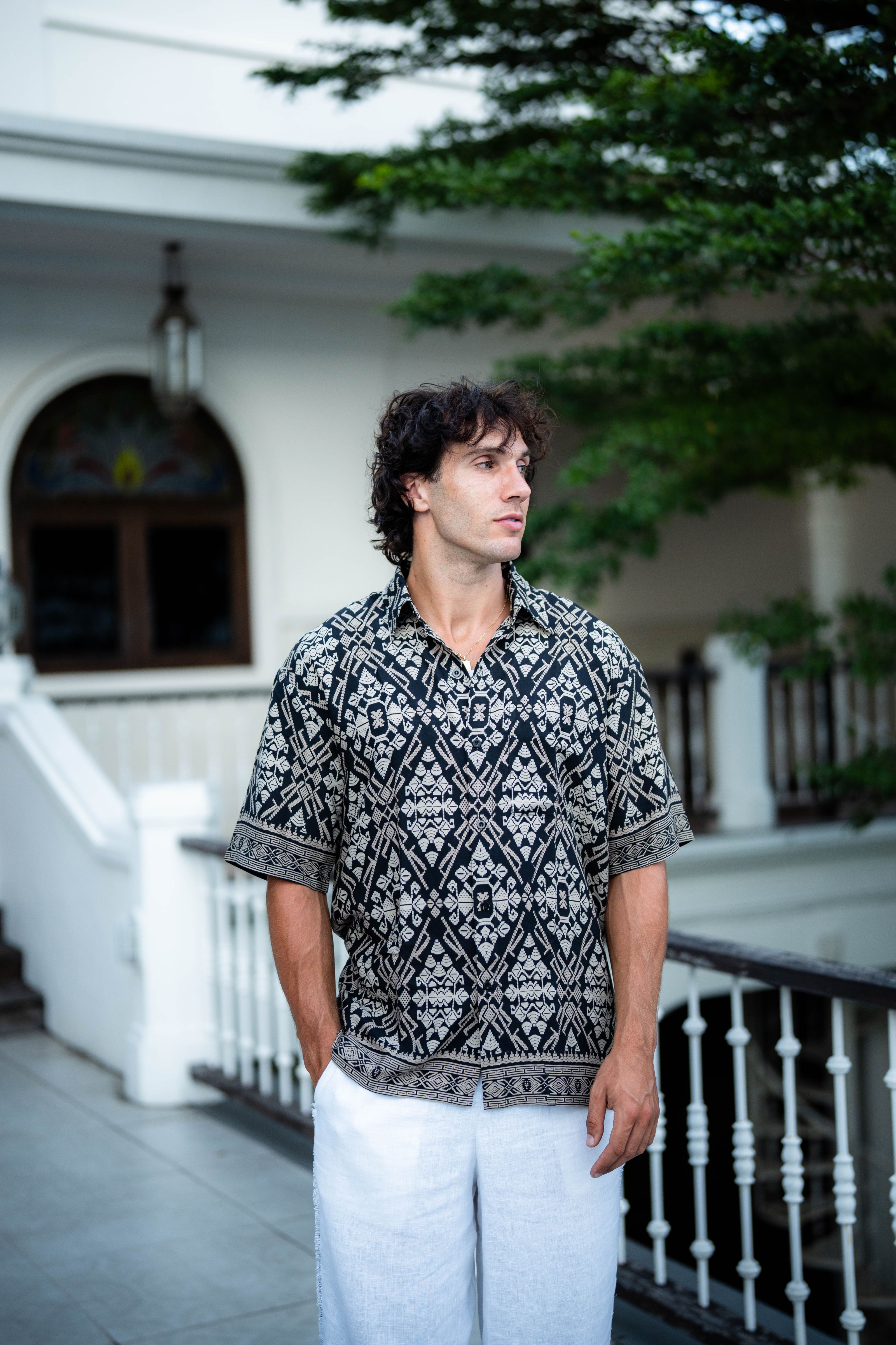 Shirt Men Rayon Catur Arah Black(L)