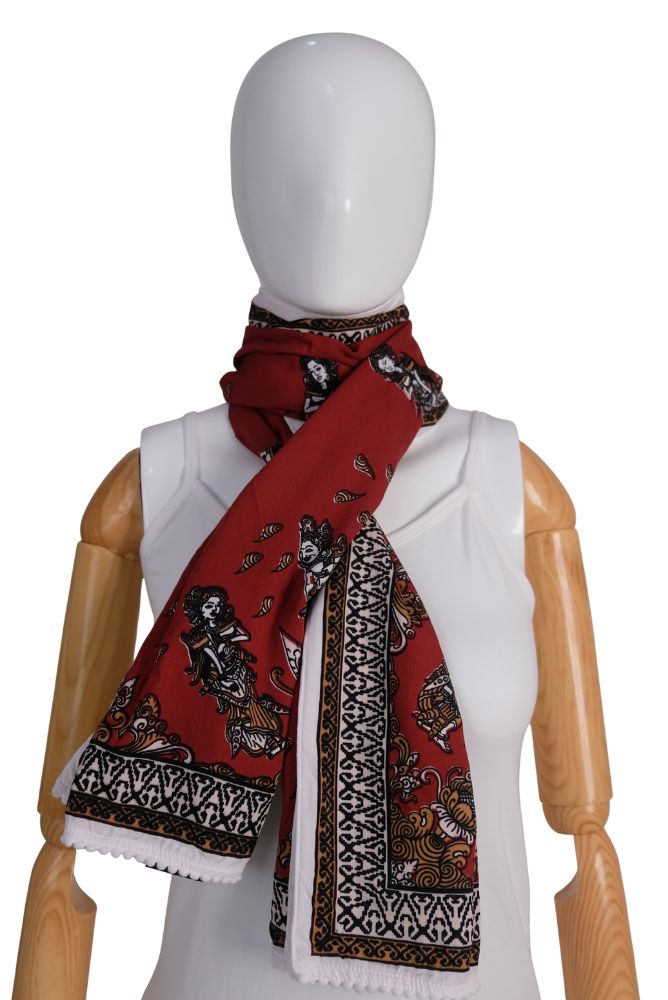 Accesories Syal Wayang Rayon Kamasan Rama Sinta Red(All Size)