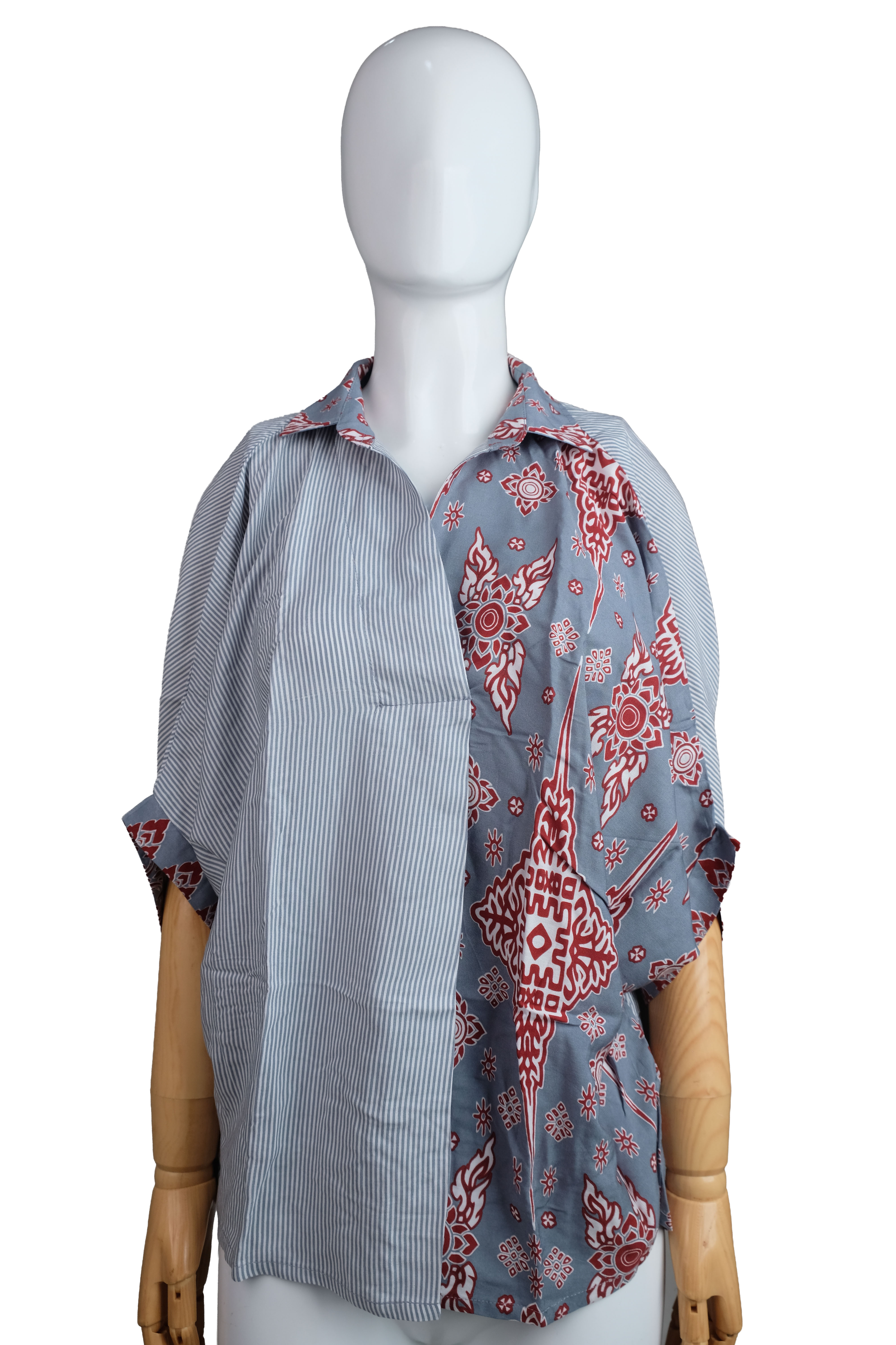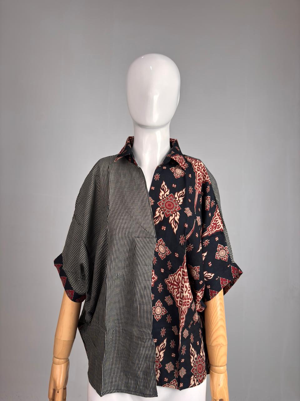 Top Cewek Garis Rayon Geringsing Manik Grey(All Size)