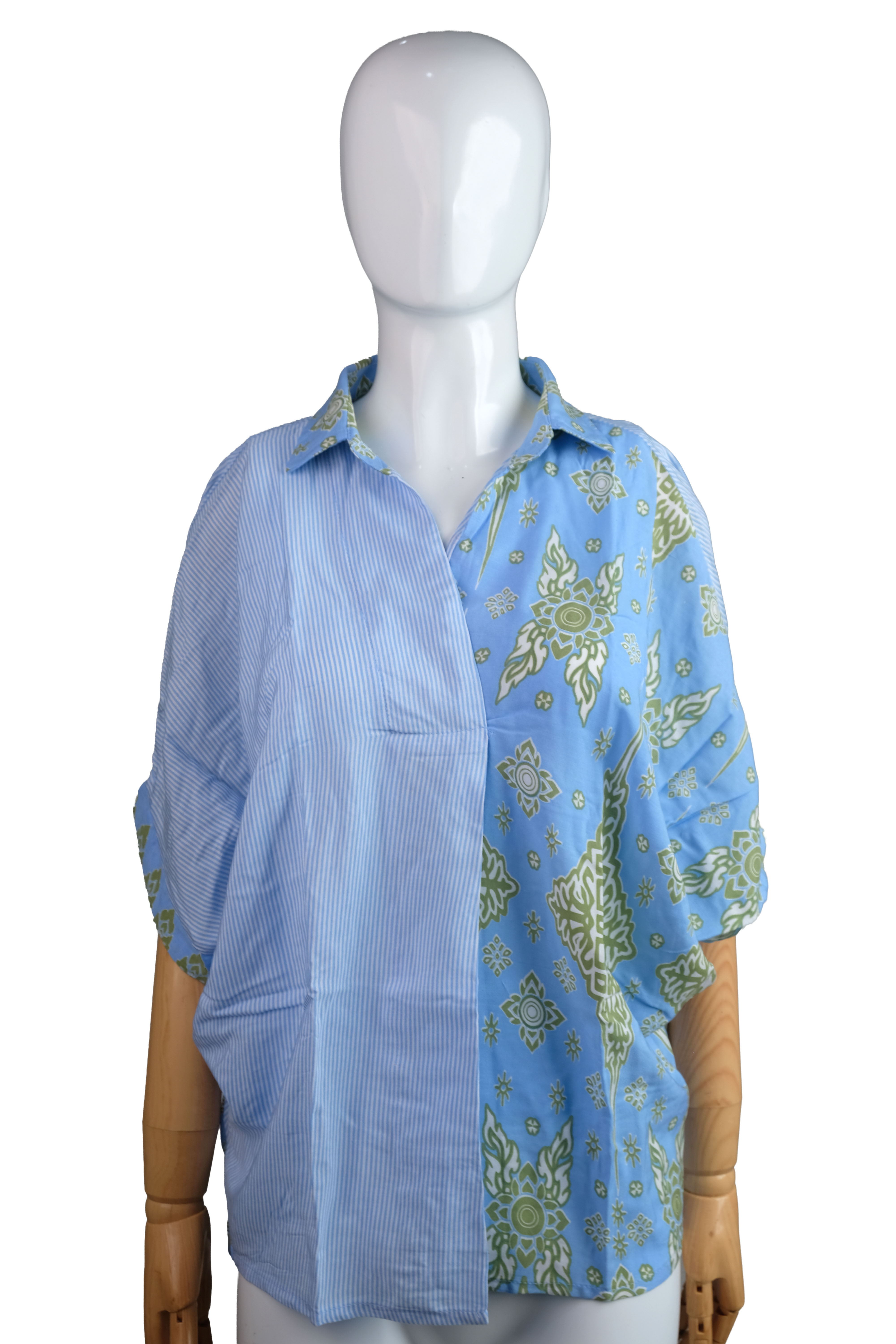 Top Cewek Garis Rayon Geringsing Manik Blue Green(All Size)