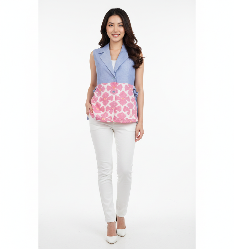 Blazer Vest Endek Pager Soft Pink(All Size)