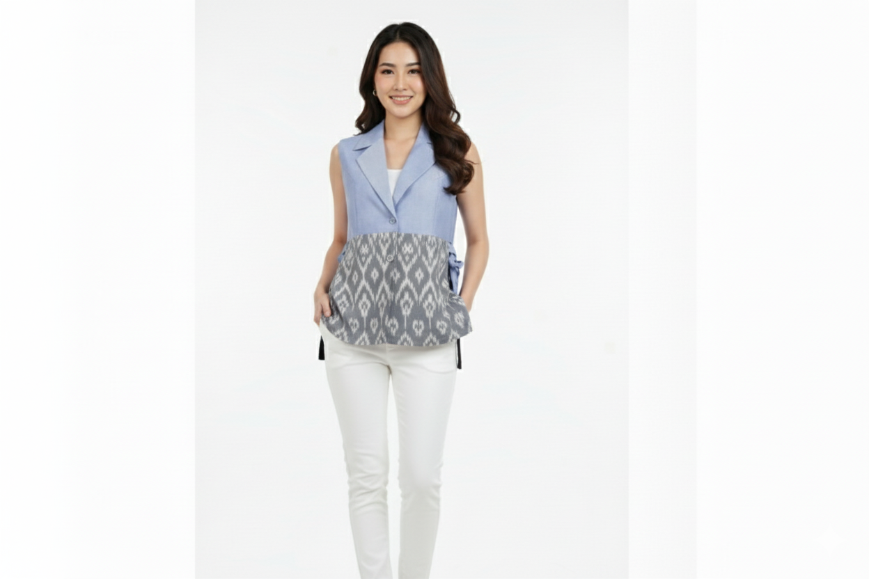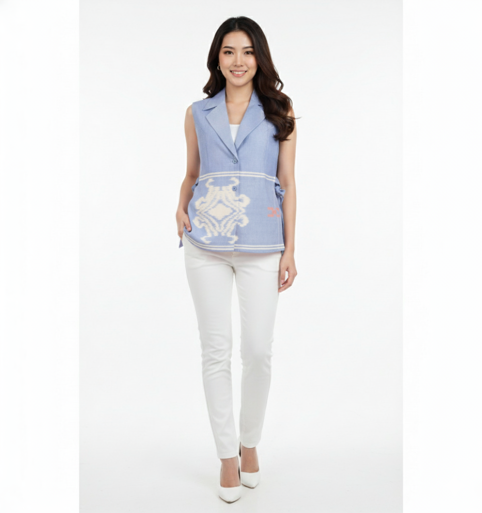 Blazer Vest Endek Segiempat Maroon(All Size)