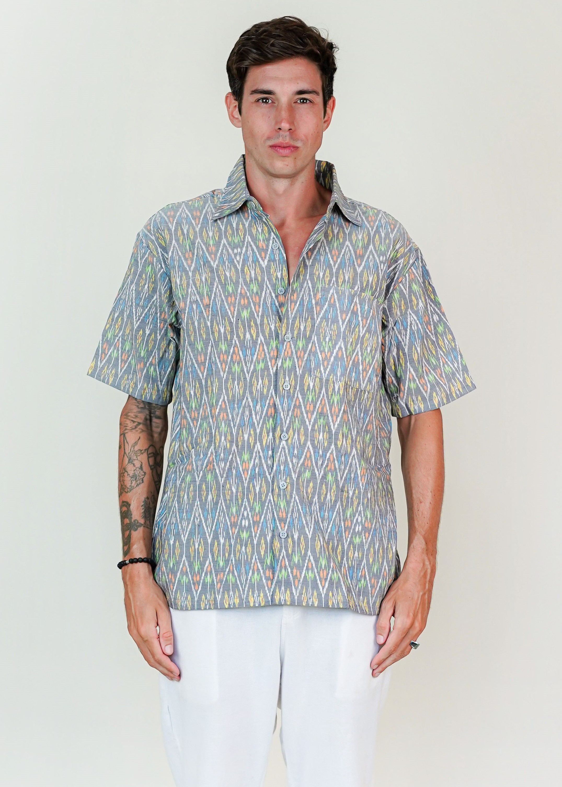 Shirt Cowok Endek Triangel Grey(L)