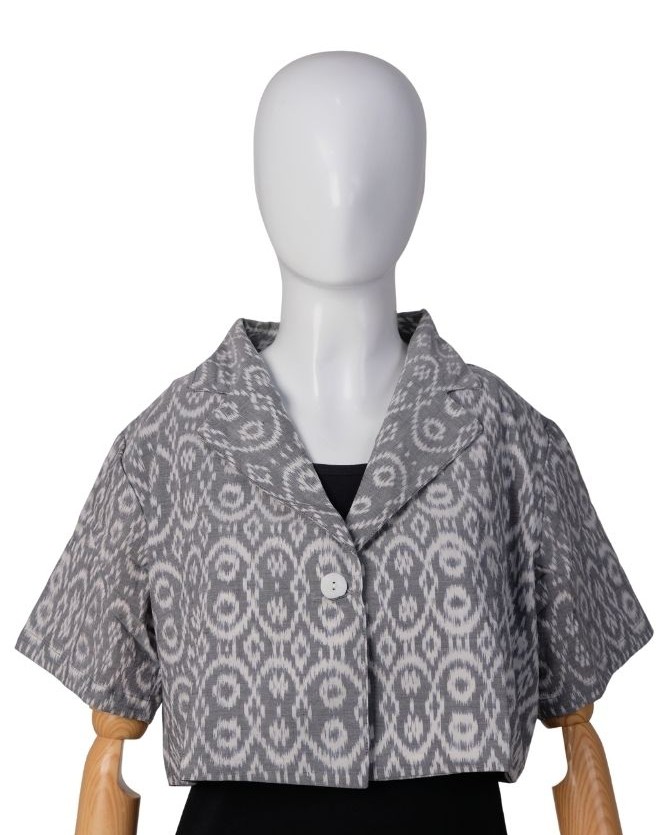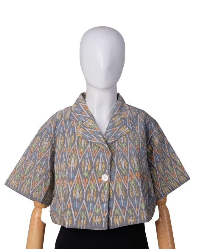 Blazer Jas Crop Endek Triangel Grey(All Size)