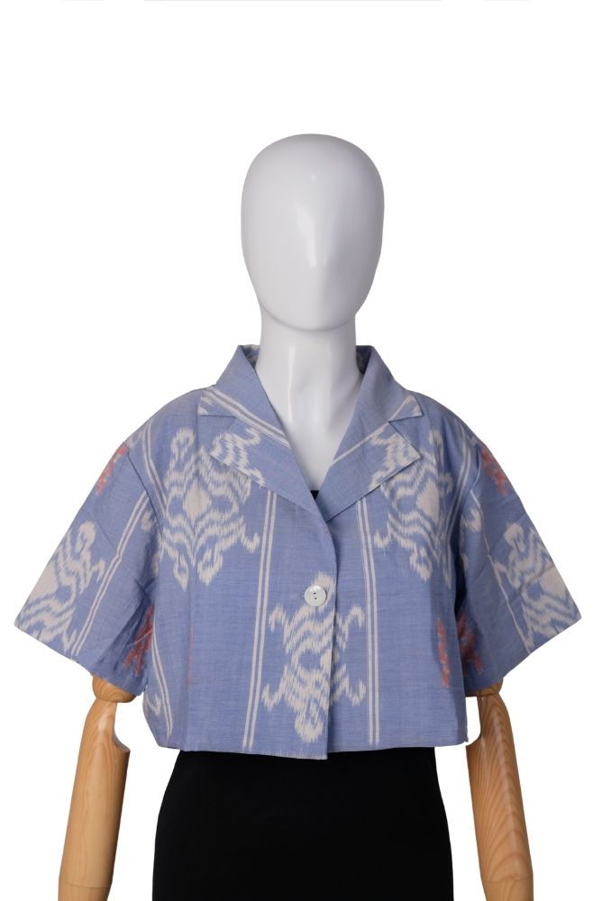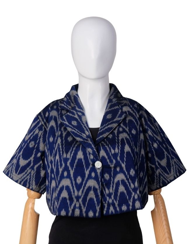 Blazer Jas Crop Endek Klasik Blue(All Size)