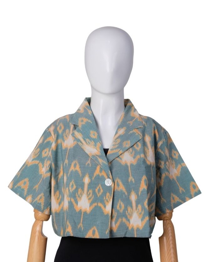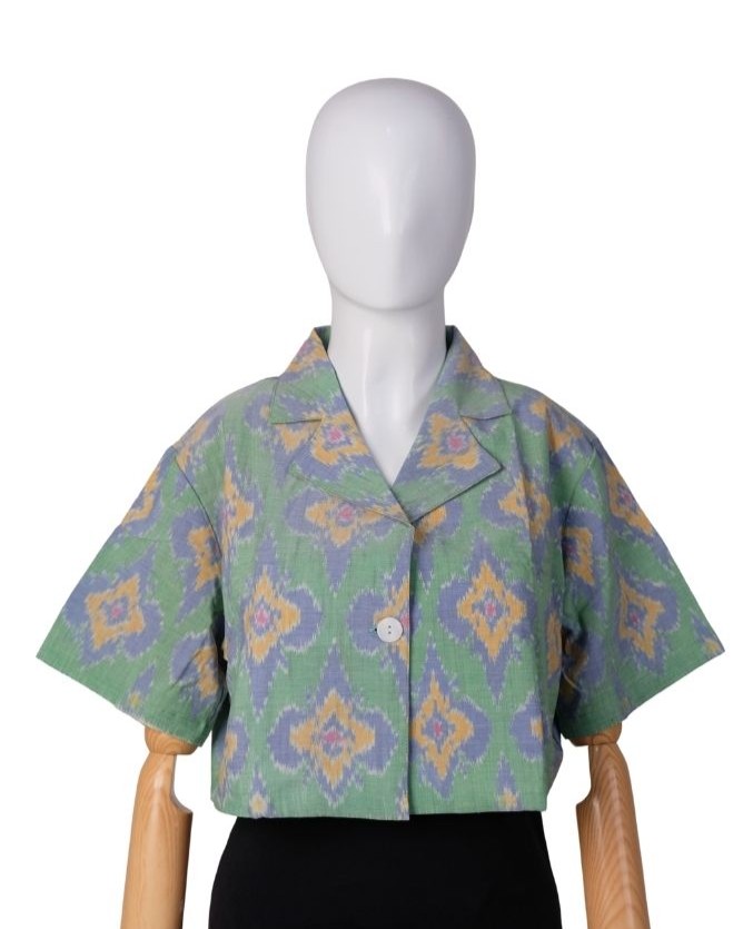 Blazer Jas Crop Endek Matahari Green(All Size)