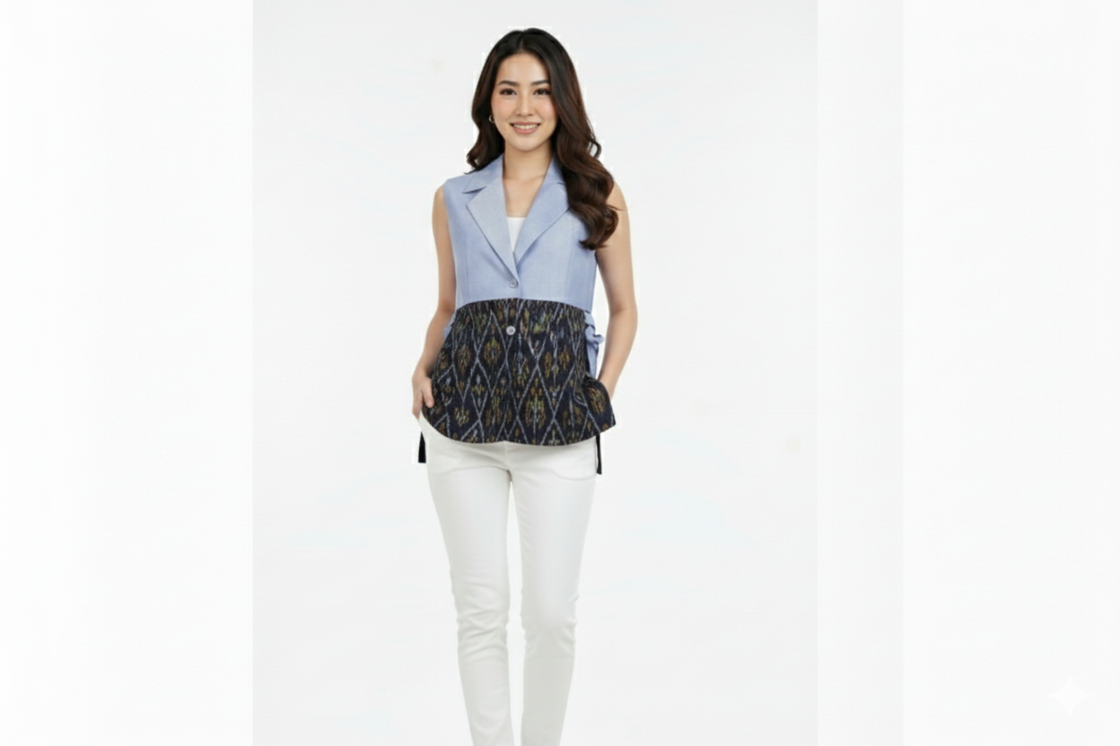 Blazer Runcing Endek Klasik Blue(All Size)