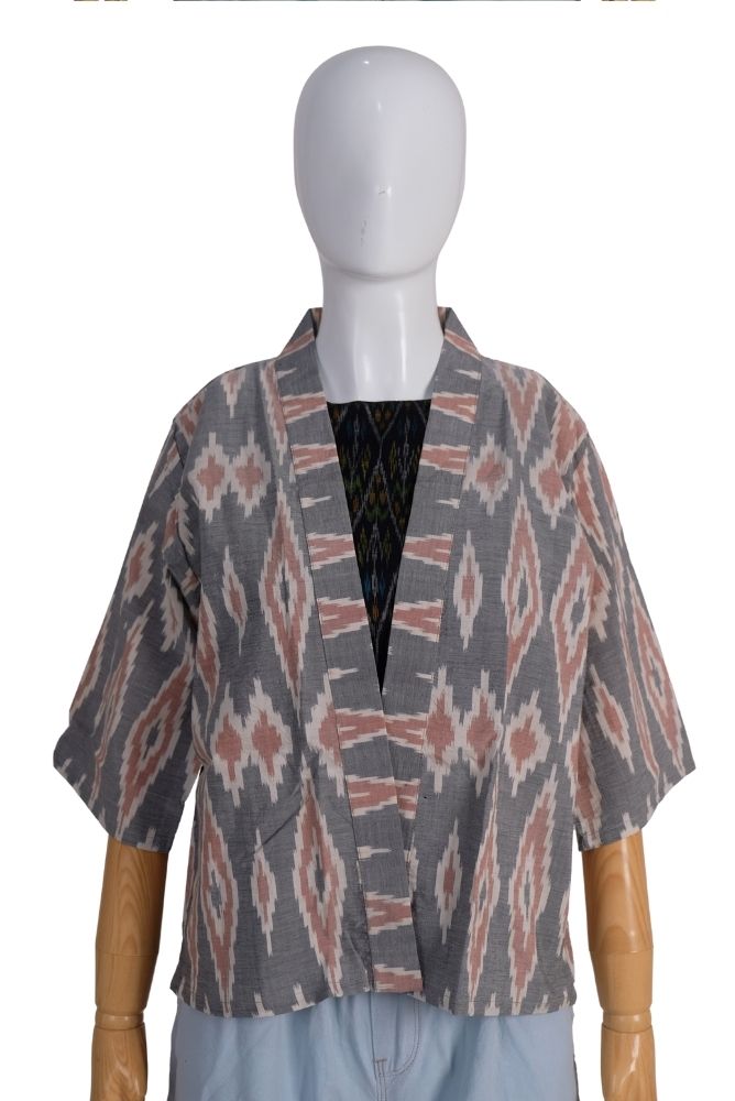 Blazer Pendek Full Endek Segitiga Kombinasi Grey(All Size)