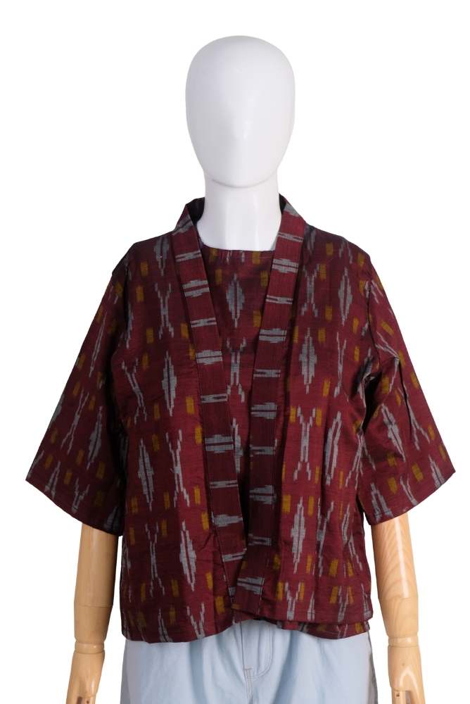 Blazer Pendek Full Endek Segiempat Maroon(All Size)