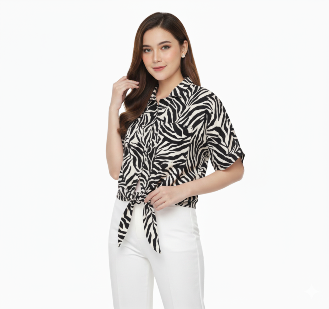 Top Diikat Rayon Daun Macan White(All Size)