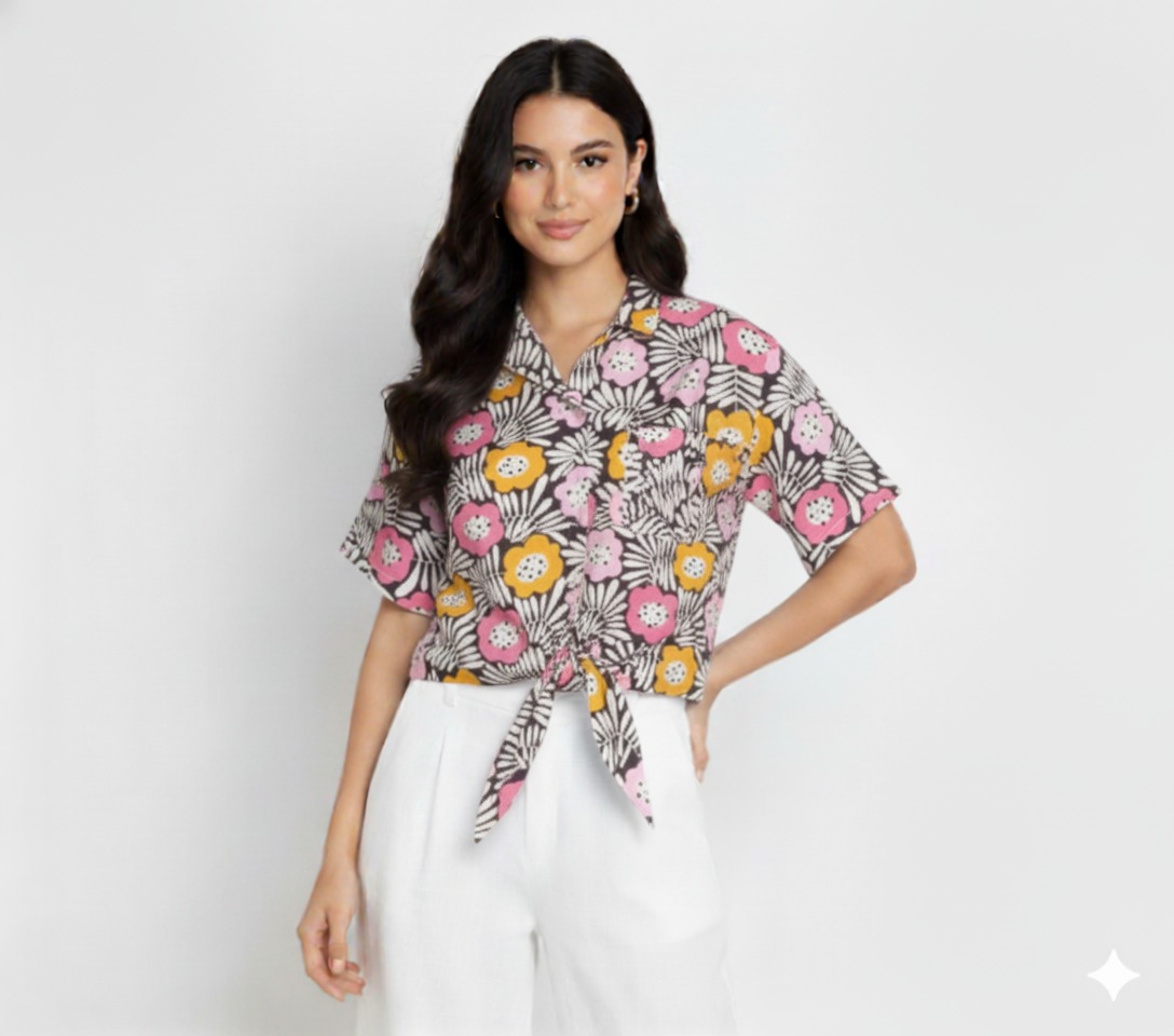 Top Diikat Rayon Kembang Pink(All Size)