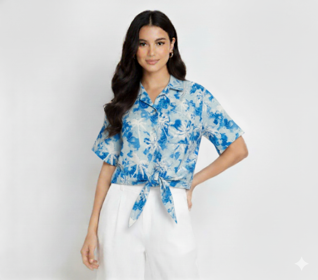 Top Diikat Rayon Daun Pantai Blue(All Size)
