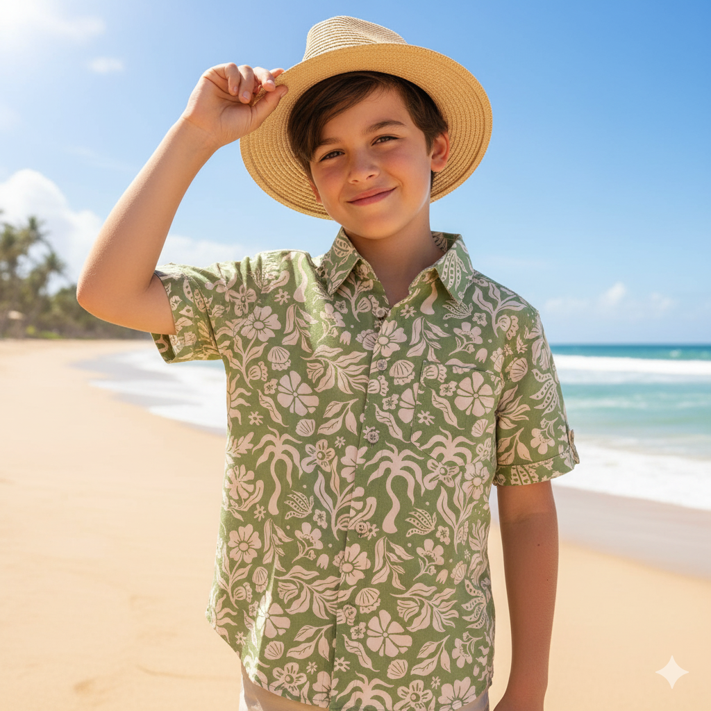Shirt Boy Matahari Rayon Matahari Bali Green(S)