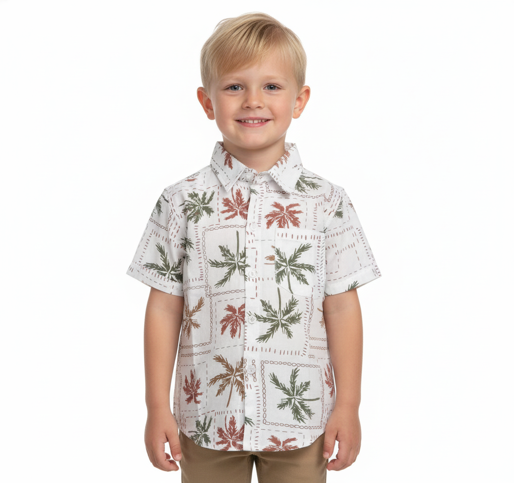 Shirt Boy Palm Rayon Palm Square Crem(M)