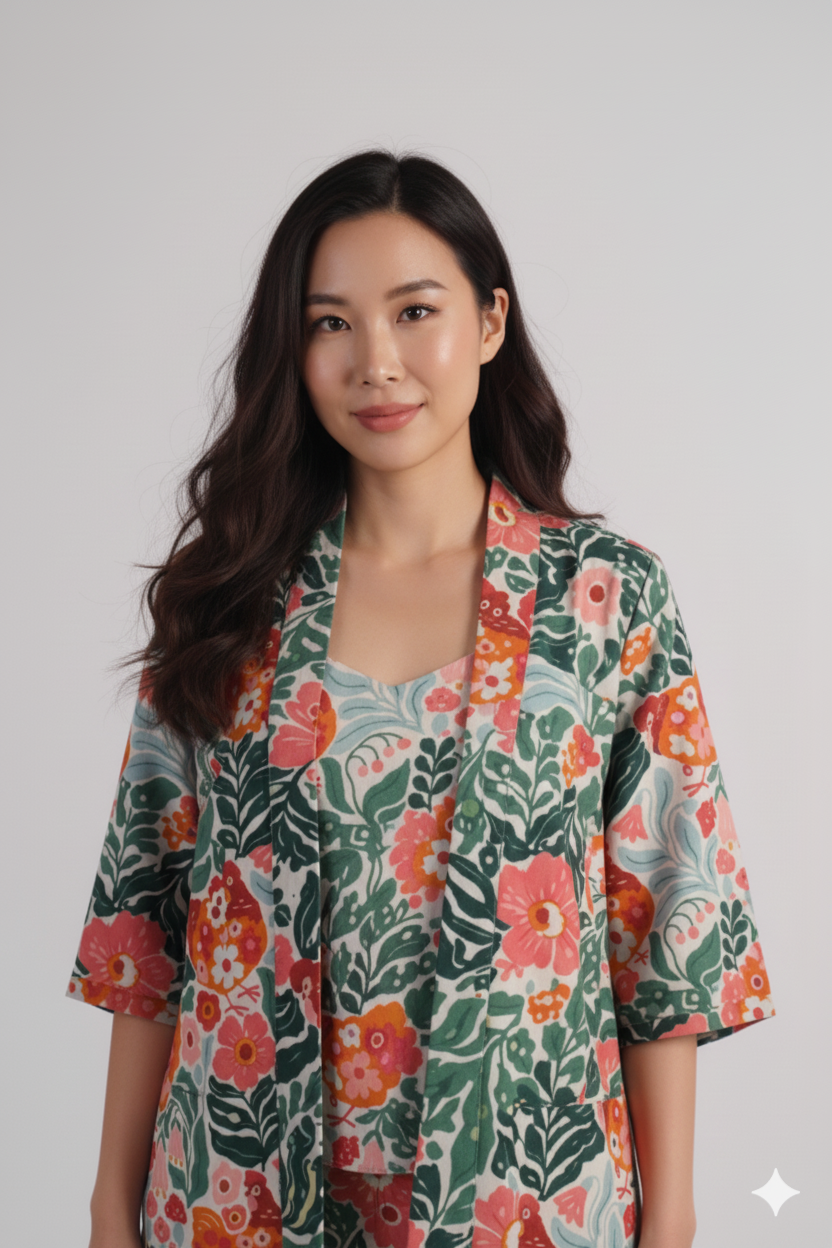 Blazer Bambu Rayon Ayam Bunga Red(All Size)