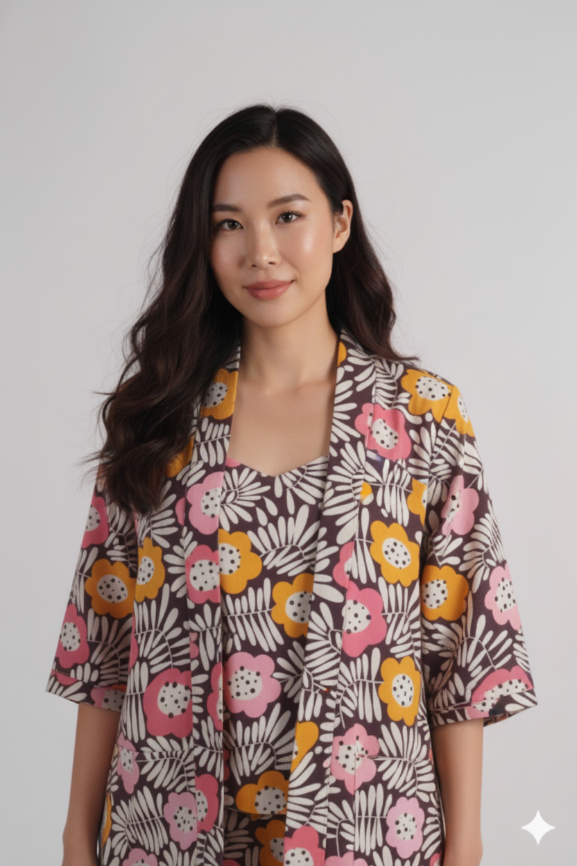 Blazer Bambu Rayon Bunga Kelopak Pink(All Size)