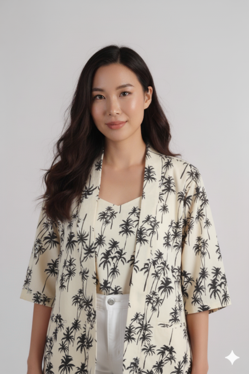 Blazer Bambu Rayon Kembang Crem(All Size)