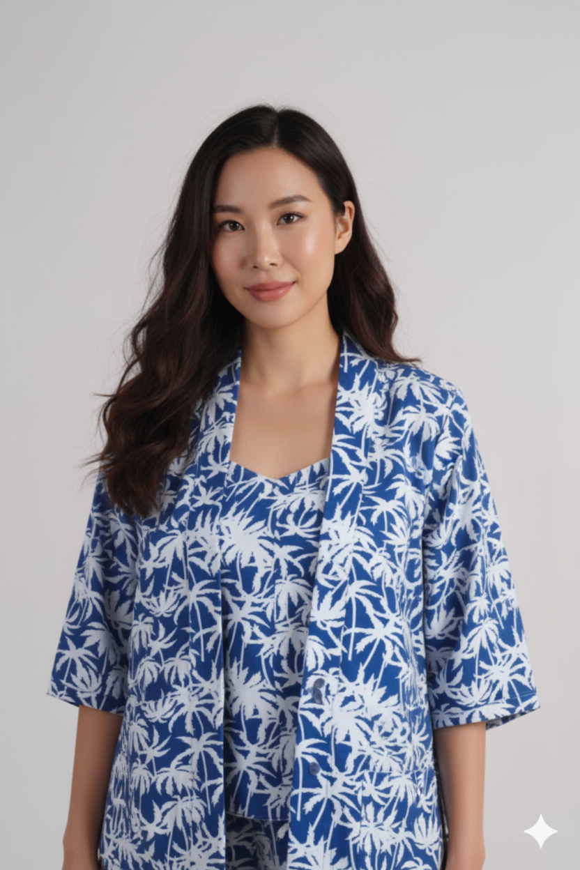 Blazer Bambu Rayon Daun Pantai Blue(All Size)