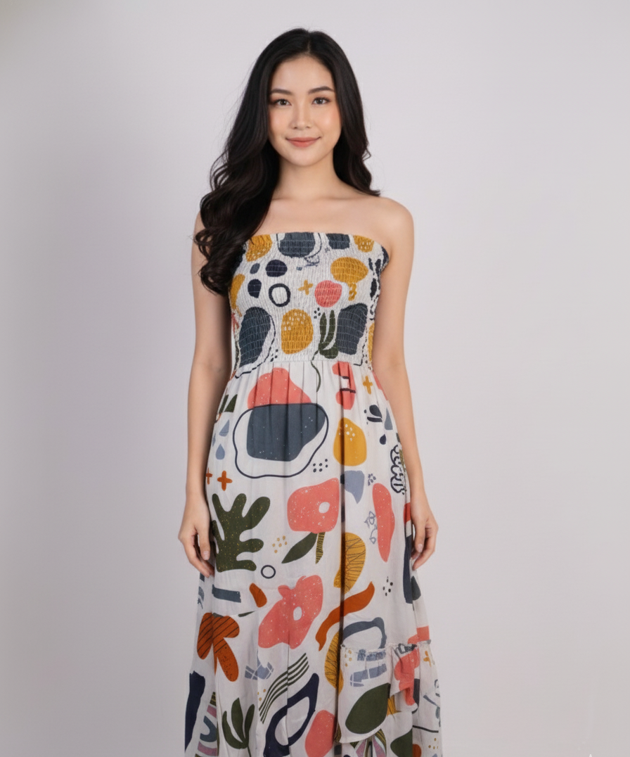 Dress Longdress Kemben Rayon Abstrak Tropical Grey(All Size)