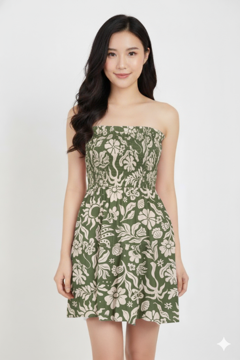 Dress Kemben Rample Rayon Tropis Green(All Size)