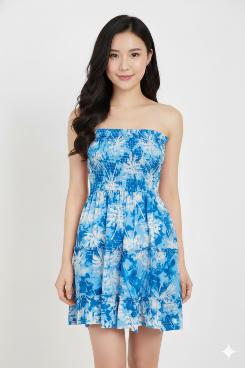 Dress Kemben Rample Rayon Tiedie Kelapa Sky Blue(All Size)