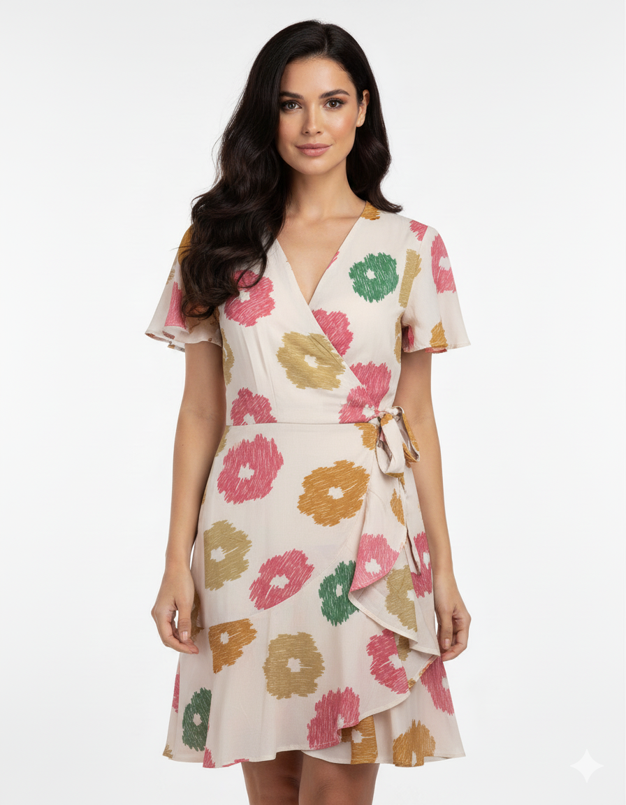 Dress Rample Kimono Rayon Daun Lebar Crem(All Size)