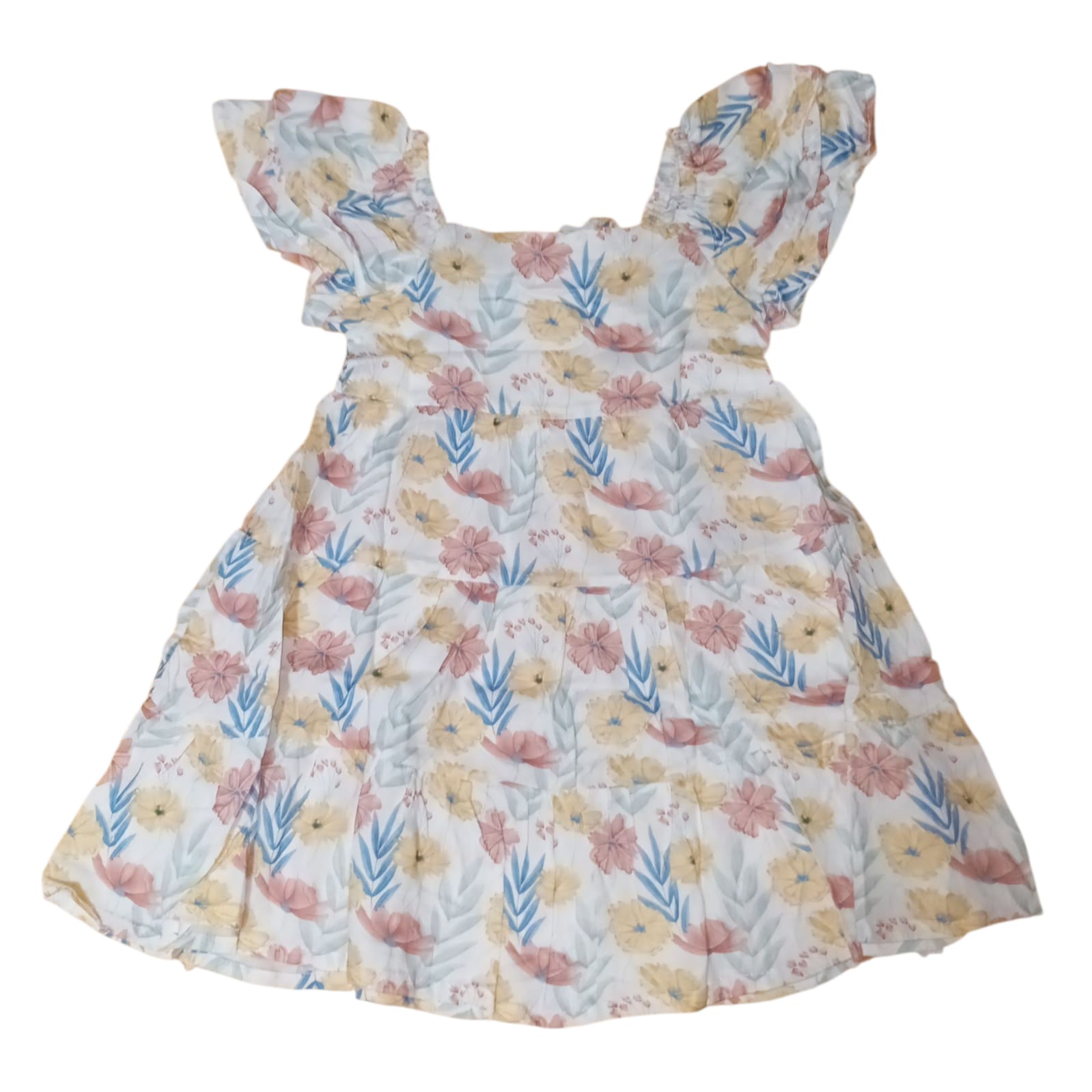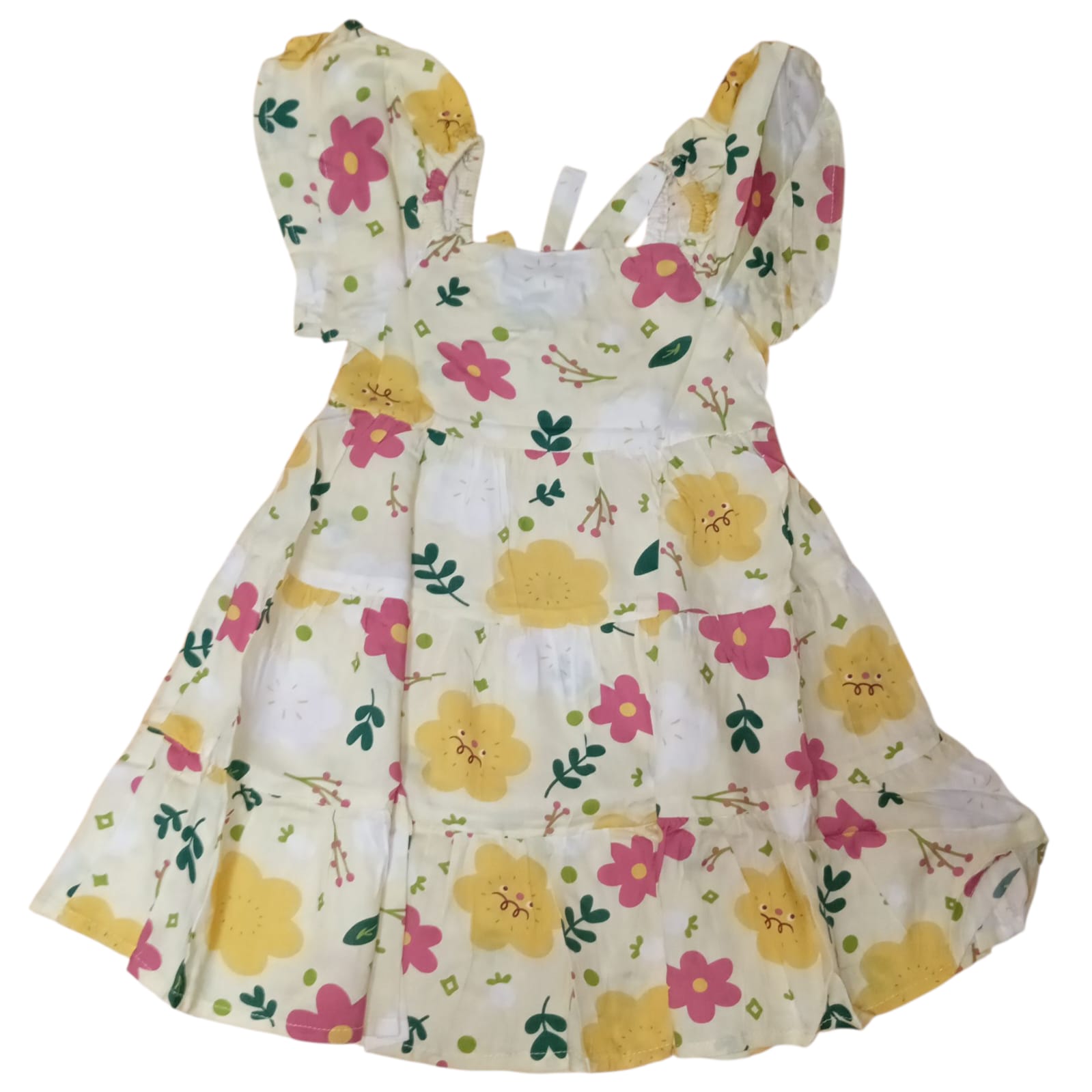 Dress Berlengan Rayon Kembang Setaman Crem(M)