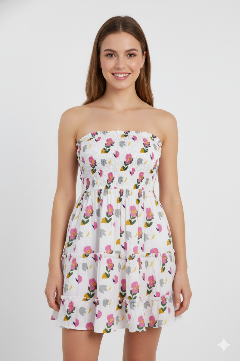 Dress Kemben Rample Rayon Coral Dewa White(All Size)