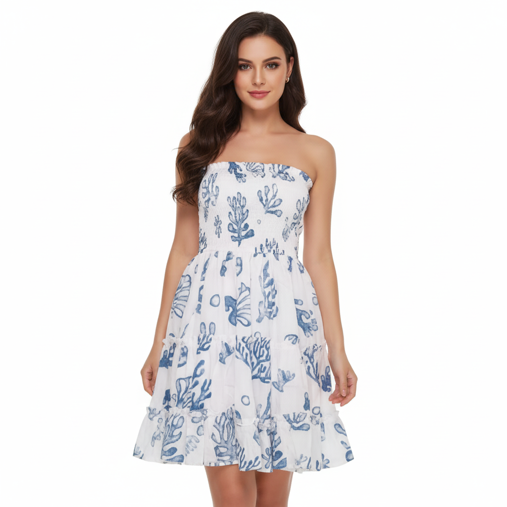 Dress Kemben Rample Rayon Daun Pantai Blue(All Size)