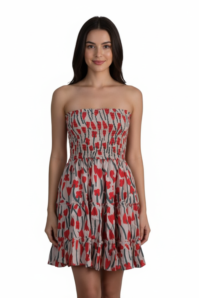 Dress Kemben Rample Rayon Tulip Red(All Size)