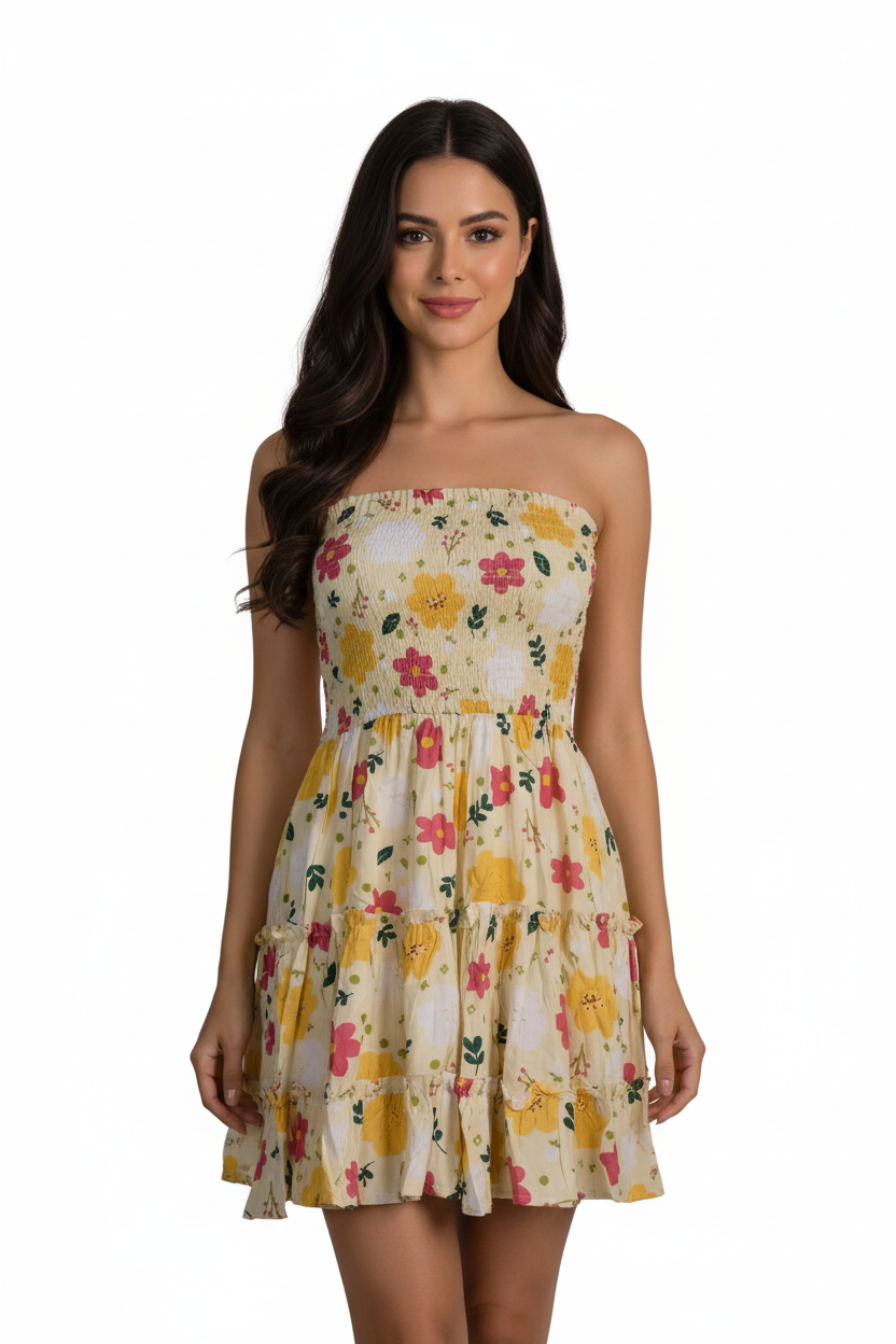 Dress Kemben Rample Rayon Bunga Yellow(All Size)