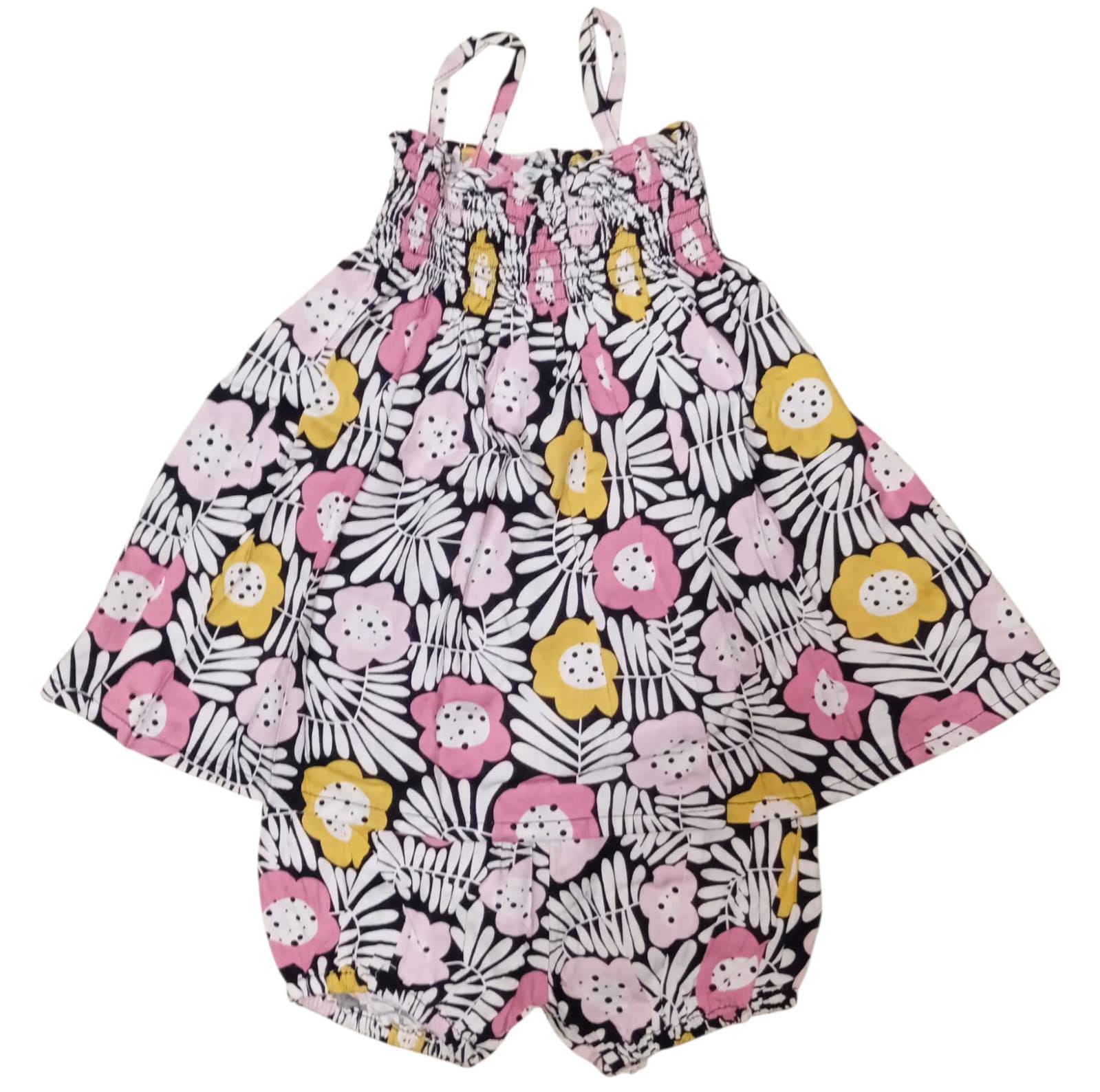 Dress Set Rayon Bunga Kancing Black(XXL)