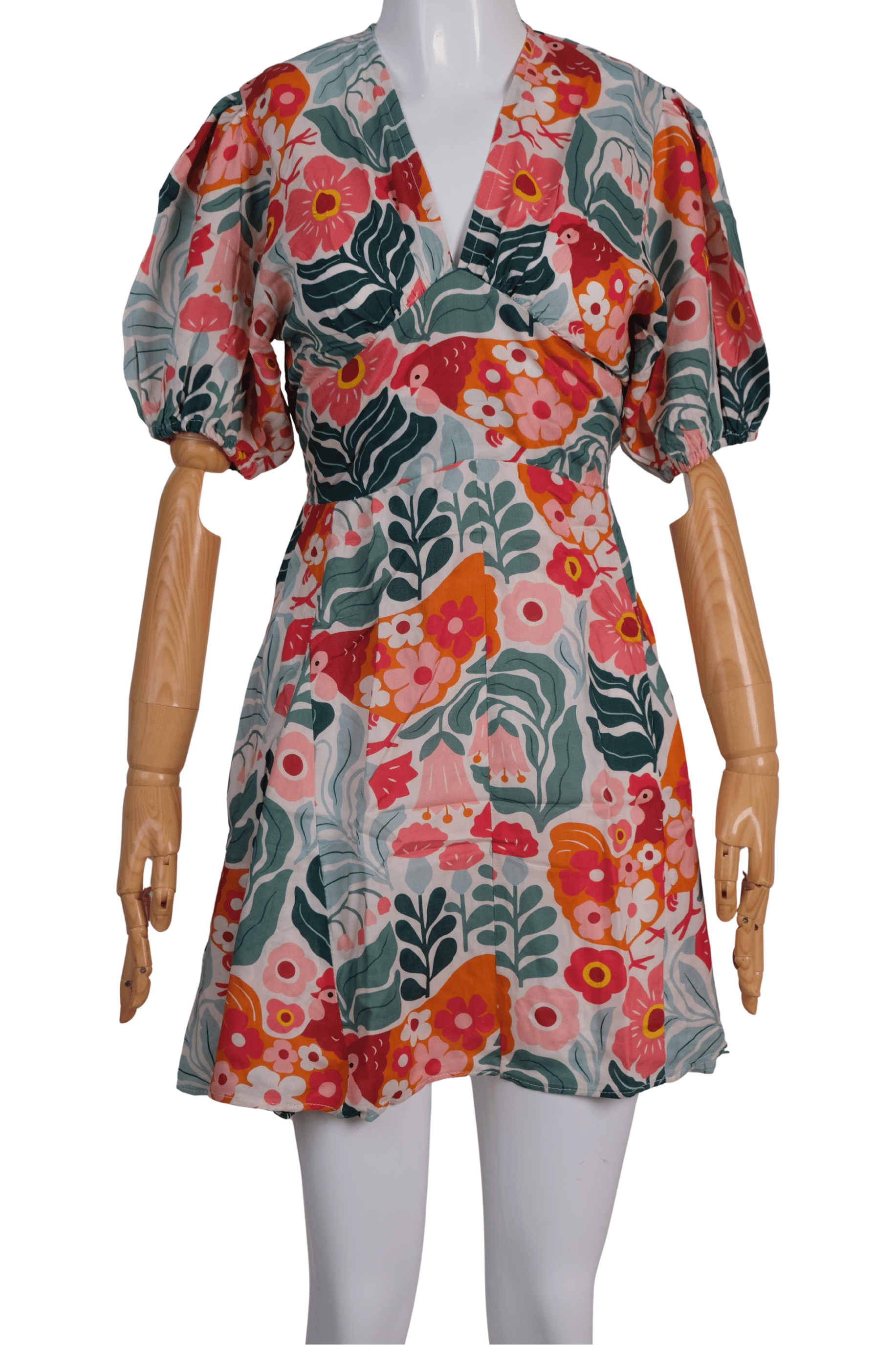 Dress Balon Rayon Ayam Bunga Red(All Size)