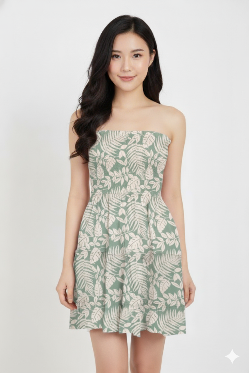 Dress Kemben Rample Rayon Daun Aldo Green(All Size)