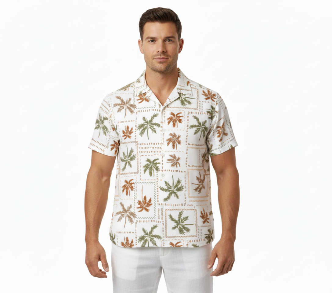Shirt Adult Palm Rayon Palm Square Crem(S)